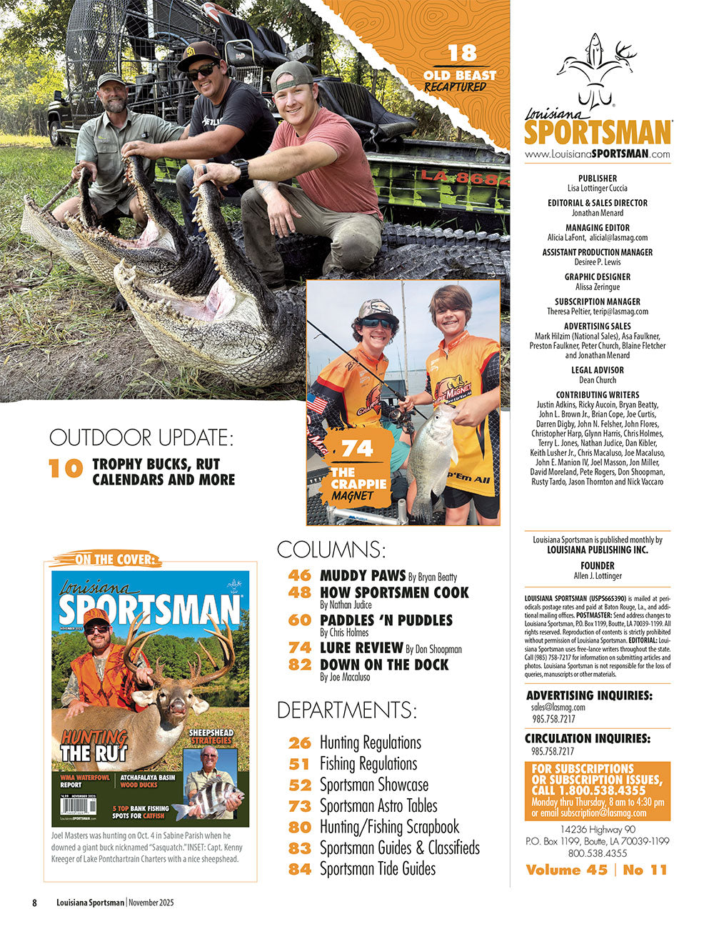 The Louisiana Sportsman is primarily a subscription magazine, and if you are looking for printed issues to save, you have come to the right place. You can now purchase back issues, or you can subscribe and get the current issue delivered to your home or business monthly.